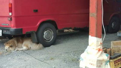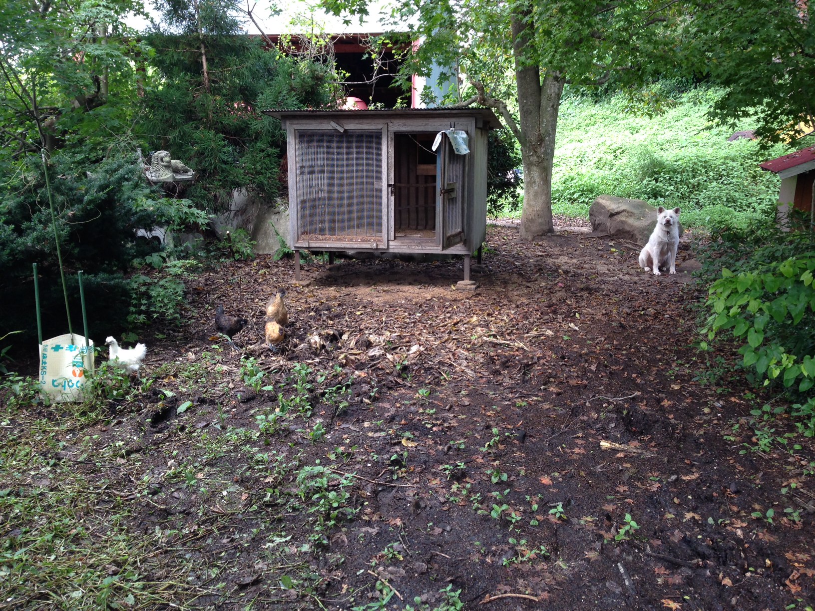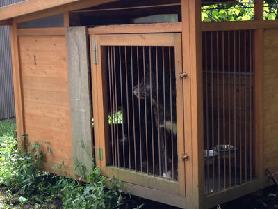 犬の世話して、子犬達にまとわりつかれて、ケージに放り込んで上から掛け物して